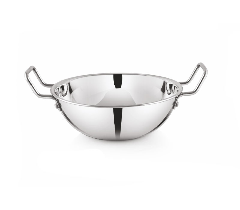 A heavy gauge stainless steel Kadhai (or Kadai) is a robust and versatile cooking vessel commonly used in Indian cuisine. Known for its thick construction, it ensures even heat distribution, preventing hot spots and promoting consistent cooking. Ideal for frying, sautéing, and simmering, the heavy gauge material retains heat well, making it perfect for deep frying and slow-cooked dishes like curries and stews. Its durable stainless steel design resists corrosion, stains, and rust, ensuring longevity. Many models come with a flat base, making them suitable for various stovetops, including induction. Easy to maintain, a heavy gauge Kadhai is a staple in both home and professional kitchens.