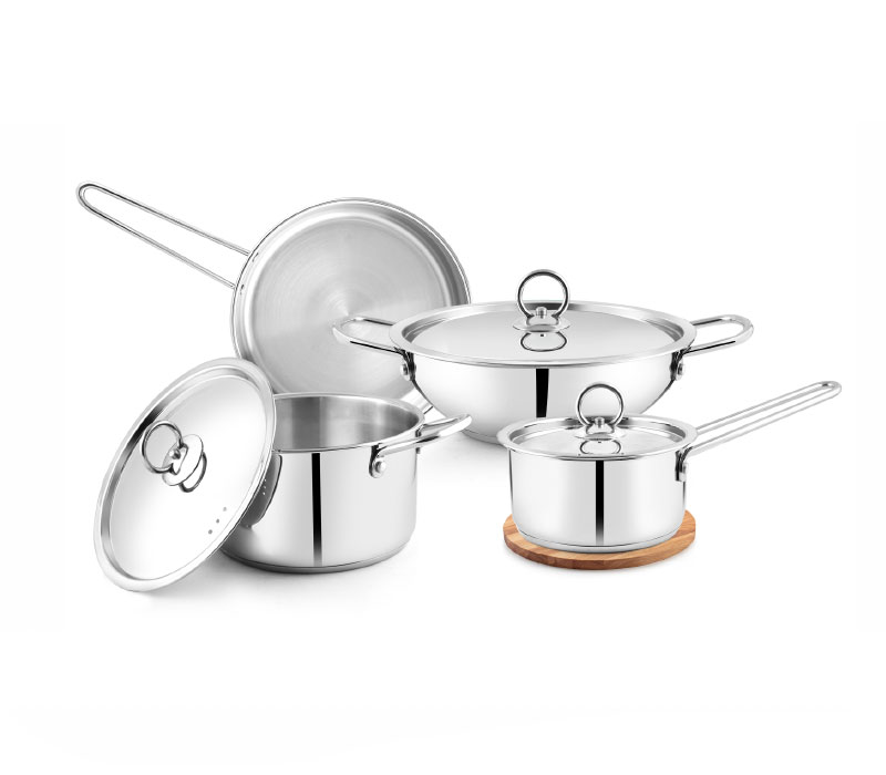 Dimension: Saucepan w/lid 16×9 cm Casserole w/lid 18×10 cm Kadai w/lid 24×8.5 cm Frypan w/lid 24×6 cm